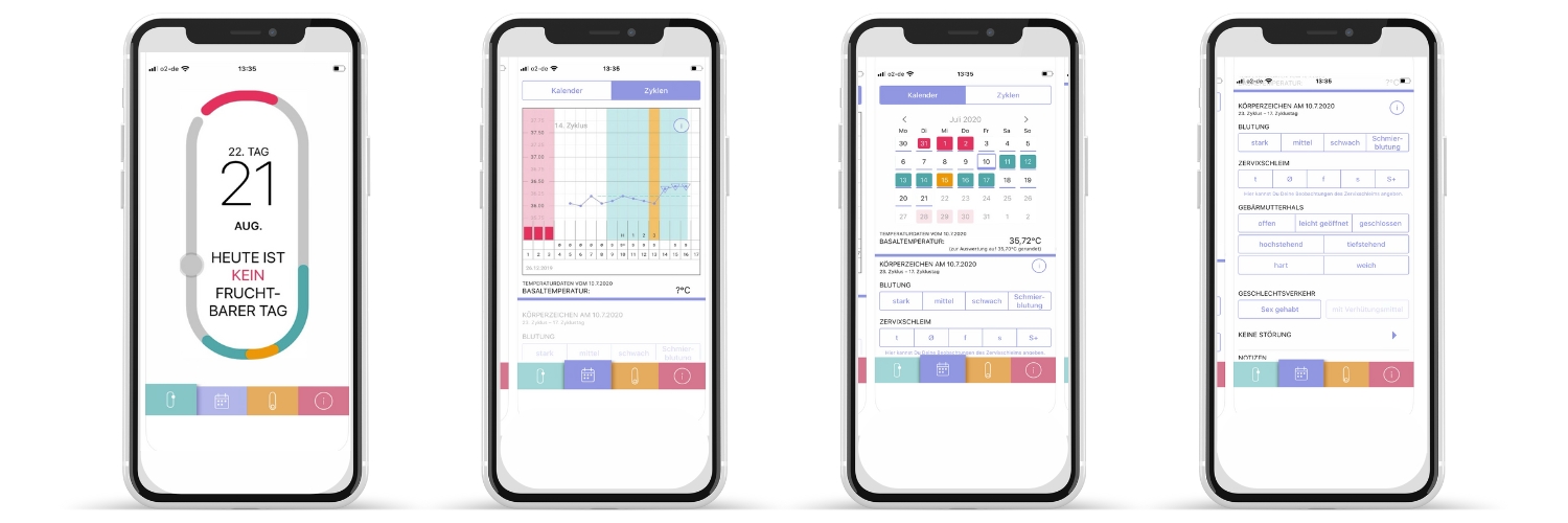 - Ein zweites Fruchtbarkeitsmerkmal: Die meisten Anwenderinnen beobachten zusätzlich ihren Zervixschleim. In den Tagen vor dem Eisprung verändert sich die Konsistenz des Schleims – er wird klarer, flüssiger und spinnbar. Dieses Zeichen kündigt die fruchtbare Phase an.